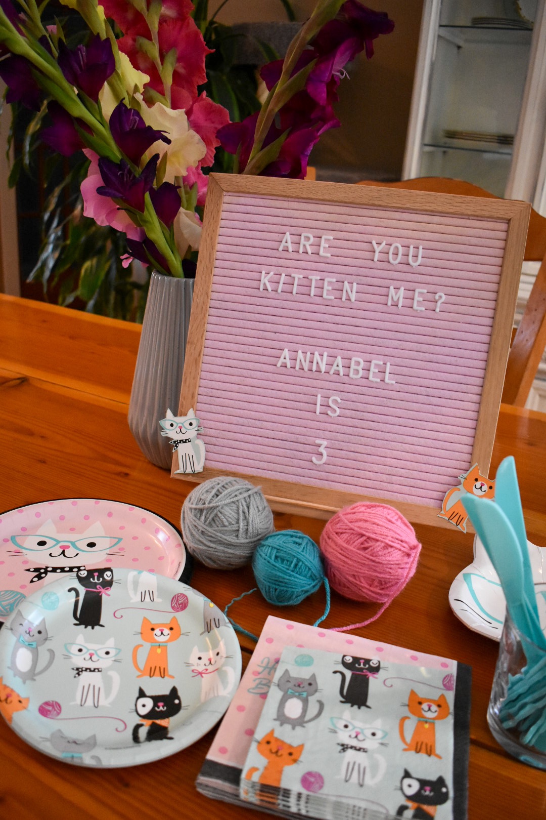 The theme, kitty cats, was chosen by the all important birthday girl and Dadda did his usual magic despite the minimal guest list. Thanks Dad, for all you do!